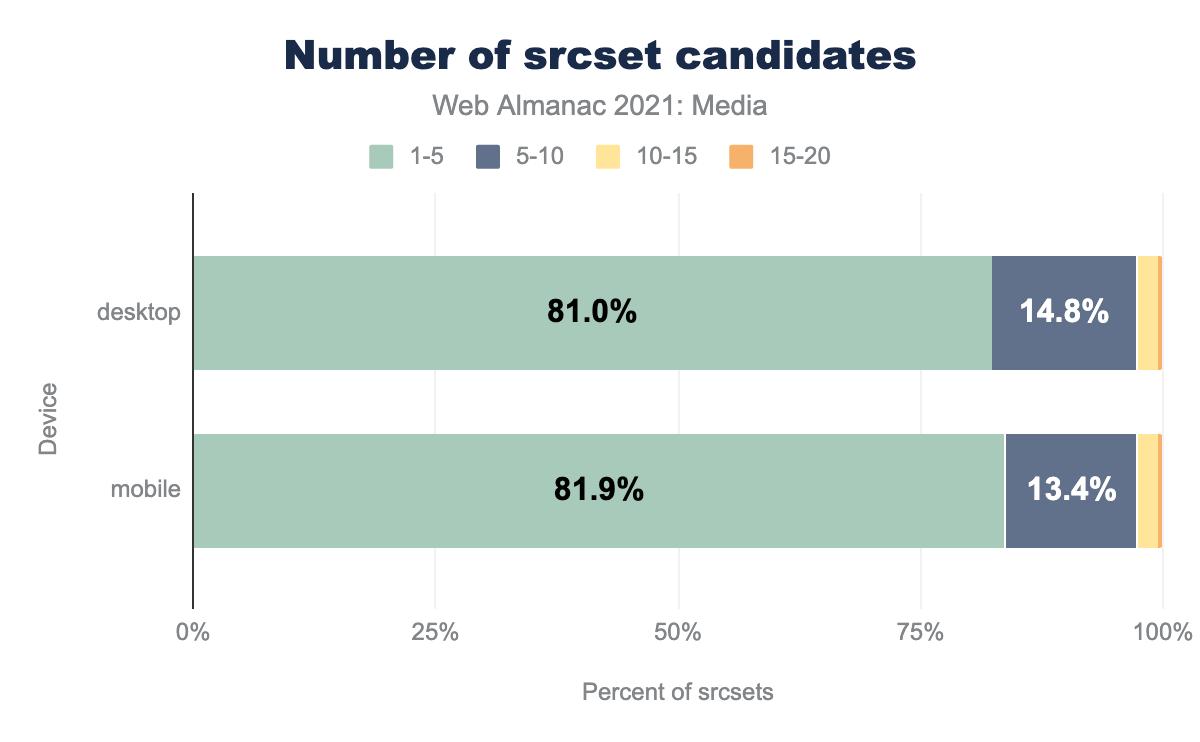 Notably, <source type> and <source media> are not mutually exclusive, and, put together, the usage percentages here do not add up to 100%. This suggests that at least 15% of <picture> elements do not leverage either of these attributes, making those <picture>s functionally equivalent to a <span>.