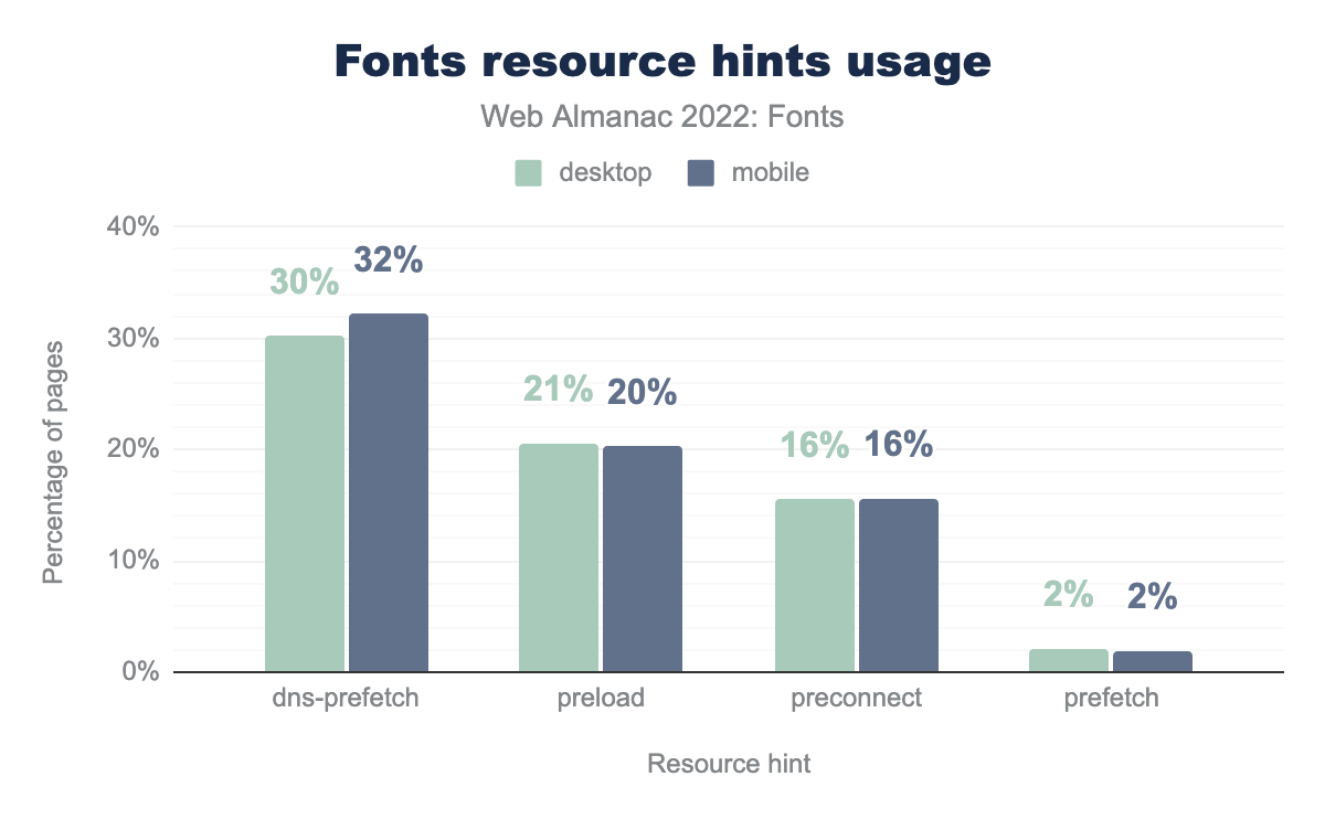 Surprisingly, there was no dramatic improvement in the percent of pages that have render-blocking resources. Only 20% of mobile pages pass the audit, which is a mere 1 percentage point increase over last year.