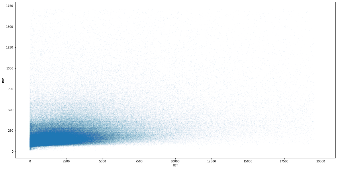 Scatterplot visualizing the correlation between INP and TBT. (Source)