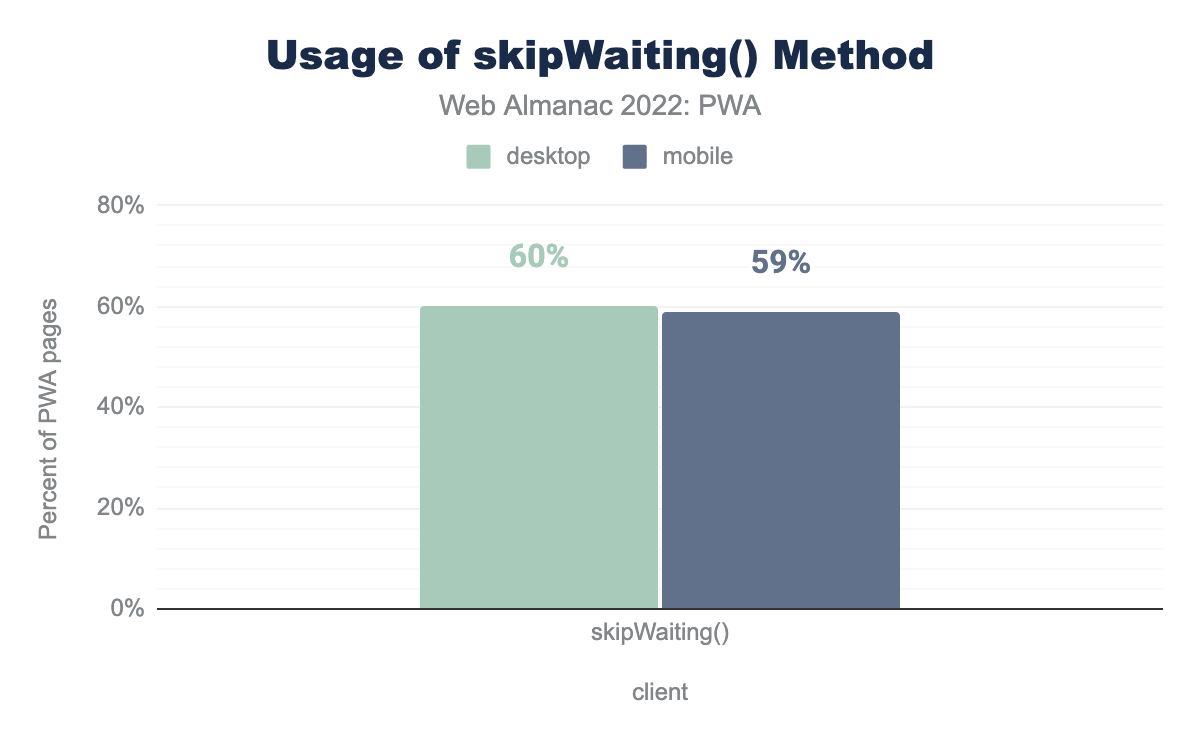 skipWaiting() 的使用率在桌面端为 60%,在移动端为 59%skipWaiting() 方法的使用
